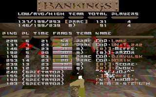 | Player | Team | Frags | Effici- ency | Kills | Deaths | Acci- dents | Rank |