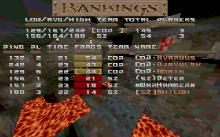 | Player | Team | Frags | Effici- ency | Kills | Deaths | Acci- dents | Rank |