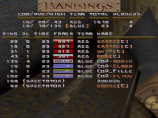 | Team | Frags | Captures | Kills |